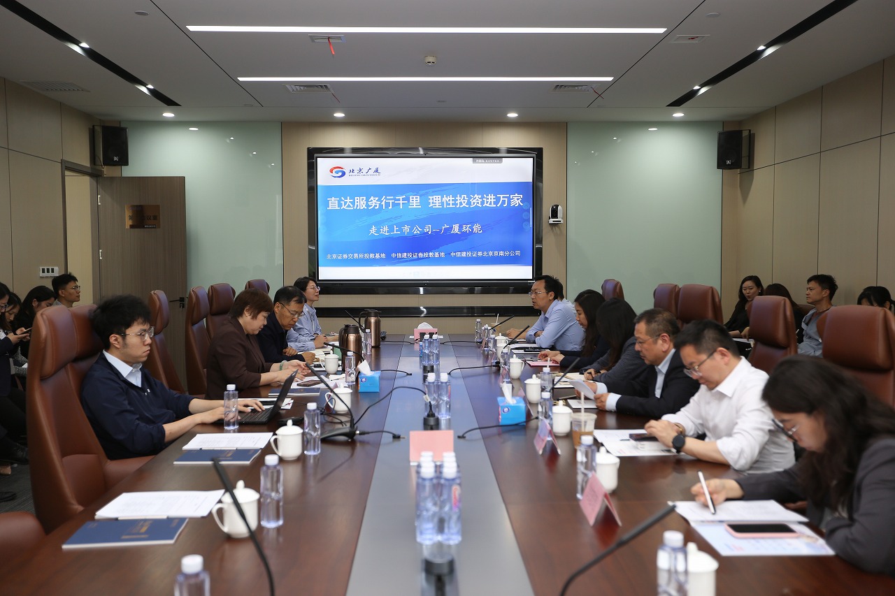 中信建投证券联合北交所举办的本次走进广厦环能主题活动,旨在搭建投资者与上市公司直接沟通的桥梁,引导投资者树立“理性投资、价值投资、长期投资”的理念,同时,对于深化公司与投资者的互动交流,增强双方互信,提升公司影响力具有重要意义。